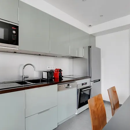 Quest'appartamento offre un soggiorno e una cucina con vista sulla città e comfort come una lavatrice.